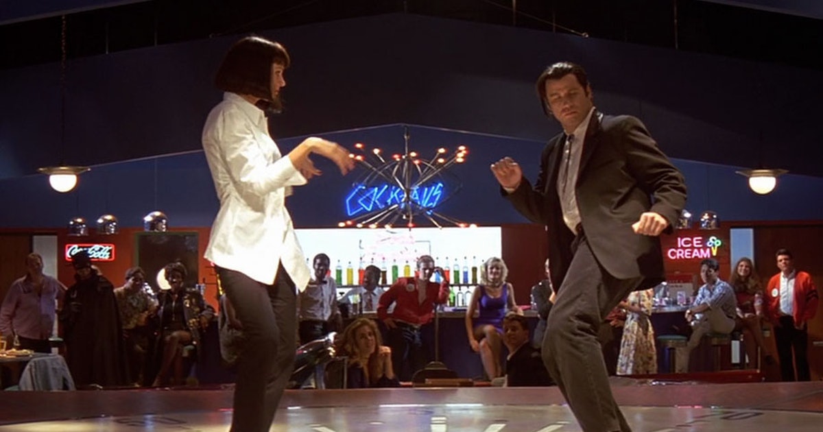 A emblemática sequência da dança entre John Travolta e Uma Thurman, ao som de “You Never Can Tell”, de Chuck Berry, é pura alquimia cinematográfica.